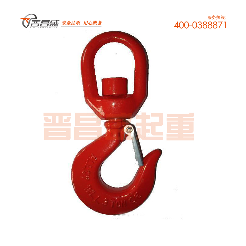 吊裝貨物時有安全舌片能有效保護好鋼絲、鏈條等滑出以確保安全;旋轉部分的設計在吊貨時能夠靈活旋轉。