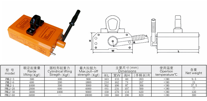 雙磁路永磁起重器是由強磁釹鐵硼組成的磁路系統產品強磁,通過手柄的旋轉控制磁路系統,達到工作目的.該產品具有吸力強,剩磁少,自重輕,結構合理的特點,特別是手柄阻尼力是單磁路永磁起重器的30%到40%,適合范圍廣泛,可以起吊5MM以上的導磁材料,有效解決了單磁路永磁起重器吊裝薄板效率低下的難題。