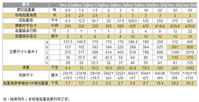 東洋手拉葫蘆參數: