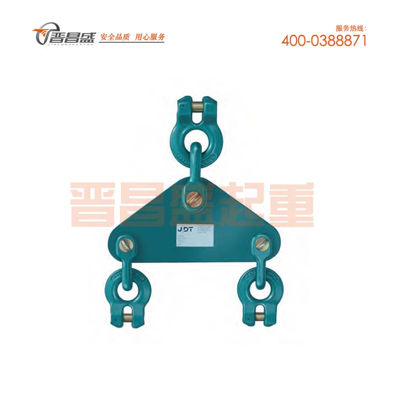 德國JDT100級卸扣式吊板產品介紹: 下面提到的額定載荷是對使用雙肢鏈有效的,必須是對稱的分布。雙肢鏈條一端安裝到吊板,另一端安裝吊鉤。