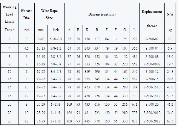 產品介紹: 1、滑車采用優質高強度鋼制造; 2、滑車設計安全系數為4:1 3、滑車上配置了便于操作維護和延長產品使用壽命佳的碳鋼滑輪和黃油嘴; 4、滑車上采用于提高產品抗腐蝕能力和使用壽命佳的卸扣; 5、滑車還可根據客戶要求進行產品定制;