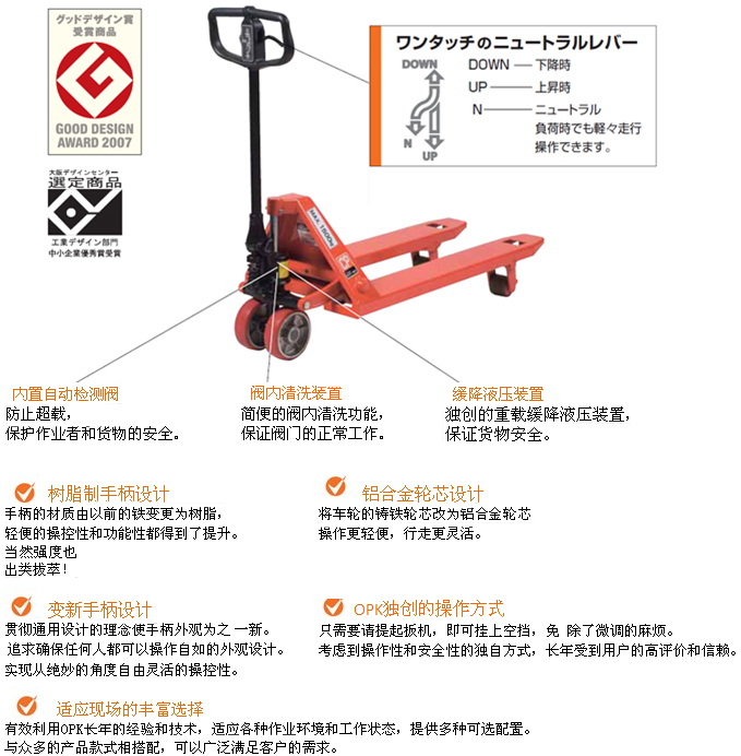 OPK獨創的油泵結構,單觸式的空擋杠桿,負荷時也可輕松操作行駛。